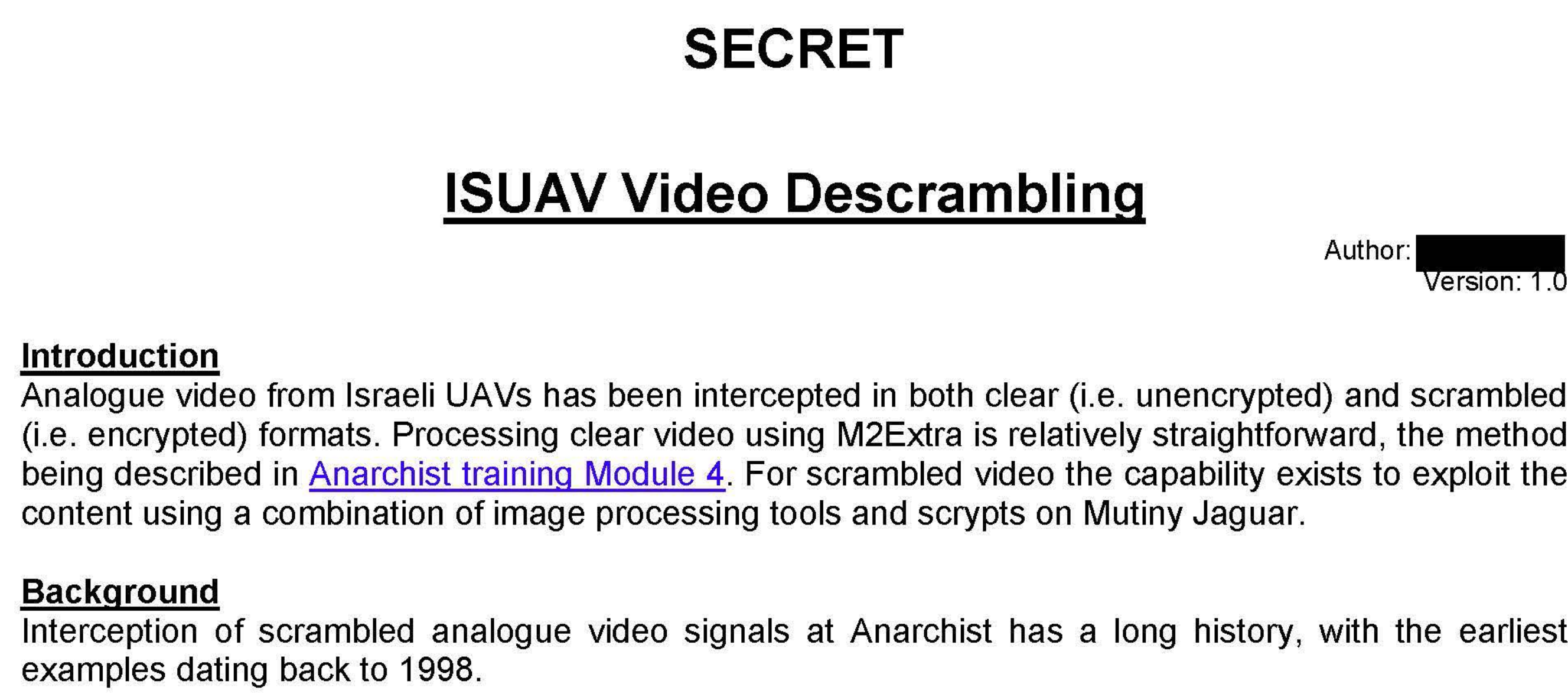 The documents mention that while digital link upgrades to normal analog video signals were observed, regular intercepts of scrambled analog video feeds were still made at the time (which we have analyzed in-depth in a previous blogpost). Given Hezbollah's ability to intercept Heron and Searcher footage, it is unsurprising GCHQ/NSA were doing the same.